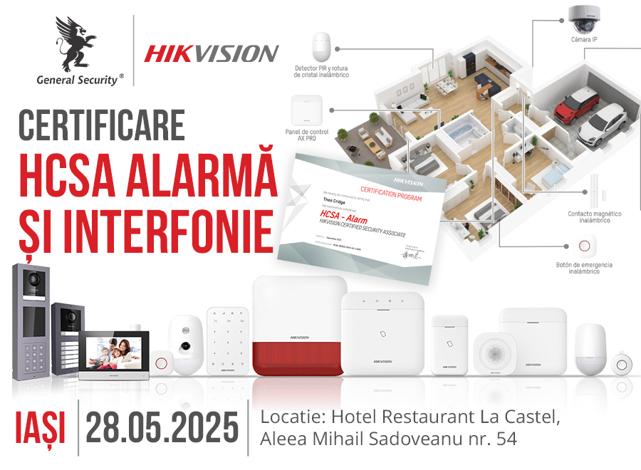 Invitație la evenimentul de certificare HCSA - Alarmă și Interfonie Hikvision – Iasi, 28 mai 2025