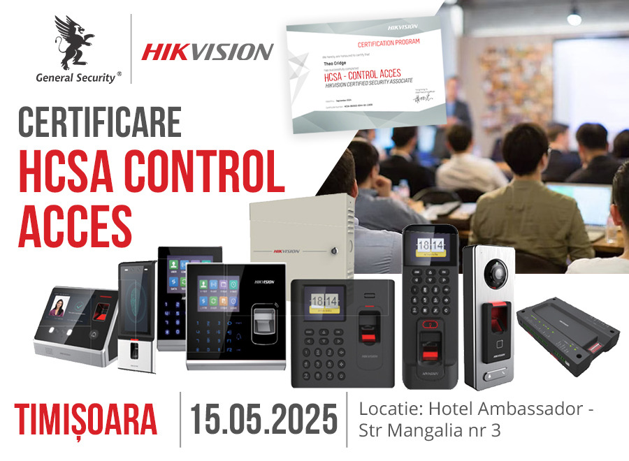 Invitație la evenimentul de certificare HCSA Control Acces Hikvision – Timisoara, 15 mai 2025