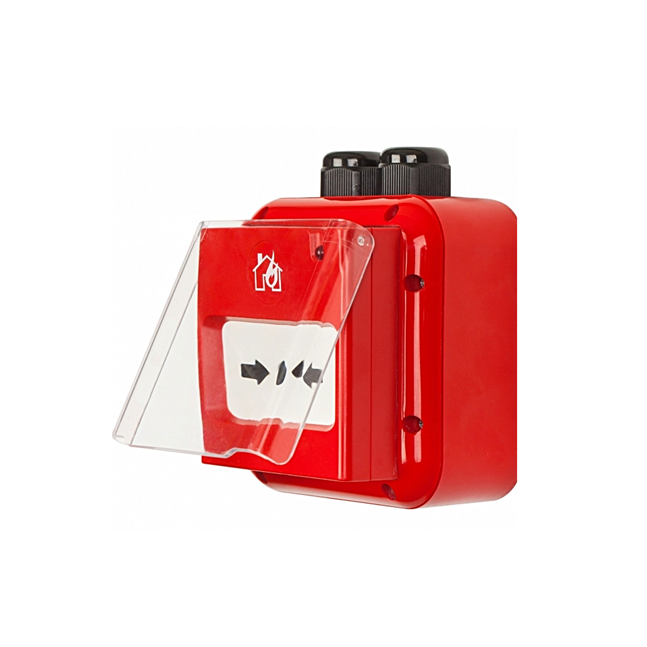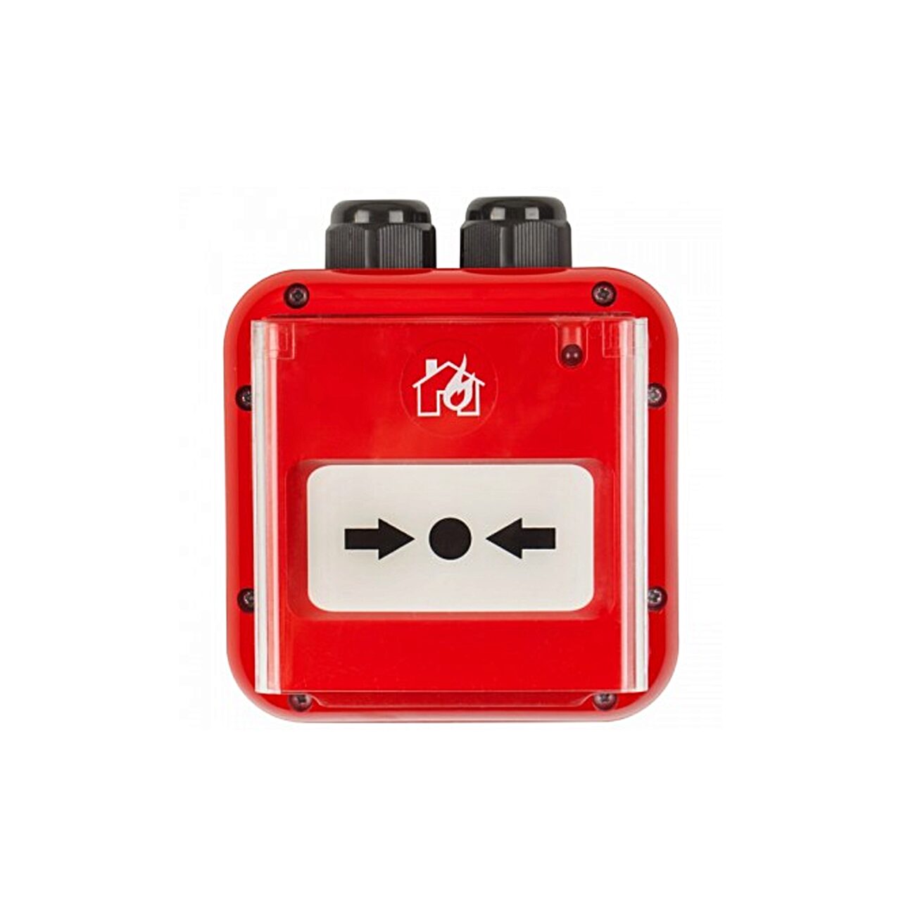 - Buton de incendiu conventional, pentru utilizare la exterior, resetabil, contine un material flexibil in loc de sticla. Resetarea si testarea se face cu o cheie speciala. Certificat EN54 - 11, weatherproof IP67.