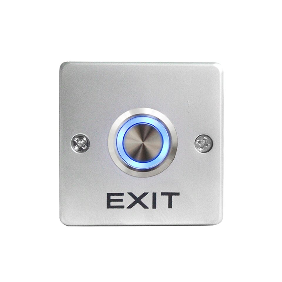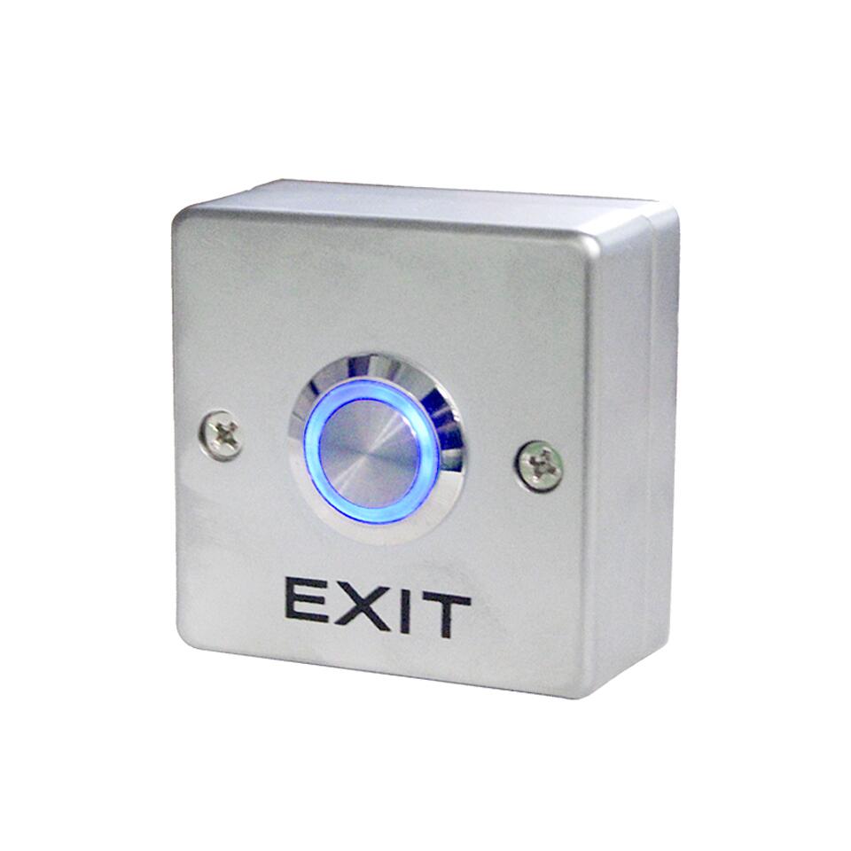 - Buton iesire, design elegant din aliaj zinc aluminiu iluminat LED; dimensiuni L53xW53xH28(mm); alimentare 12Vcc, Output Contact NO/NC/COM, testat pentru 500000 actionari, gama de temperaturi de utilizare -20C pana la +55C.