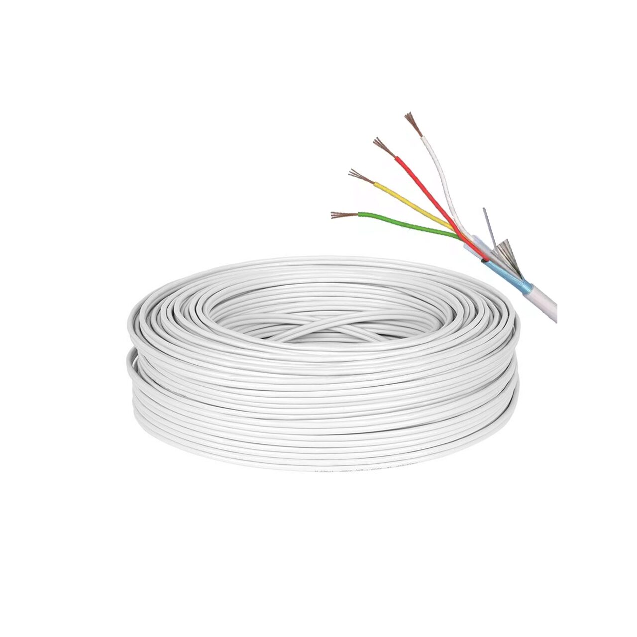 - Cablu ecranat 4 x 0,22, PVC alb antiflacara.Pretul afisat este / ml. Livrabil in colac de 100m.