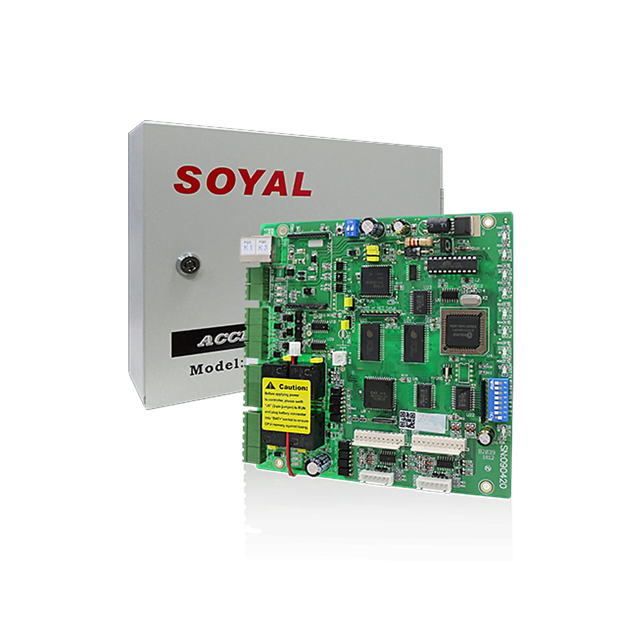 - Centrala de control acces Soyal pentru 18 usi +2 cititoare Wiegand (RS485 CH1 8 Controlers + RS485 CH2 8 Controlers + 2 WG PORT, DI*4, RS485), pana la 15000 utilizatori, memorie pentru 11000 evenimente, Anti-Passback pentru 16 usi, contact Di Fire care conectat la sistemul detectie incendiu deschide imediat usile la alarma la incendiu; echipata cu Ethernet Card pentru a fi usor gestionata in retea; alimentare 9-24Vcc, in cutie metalica dimensiuni: 180x231x62mm; temperatura de functionare -20C pana la +65C.