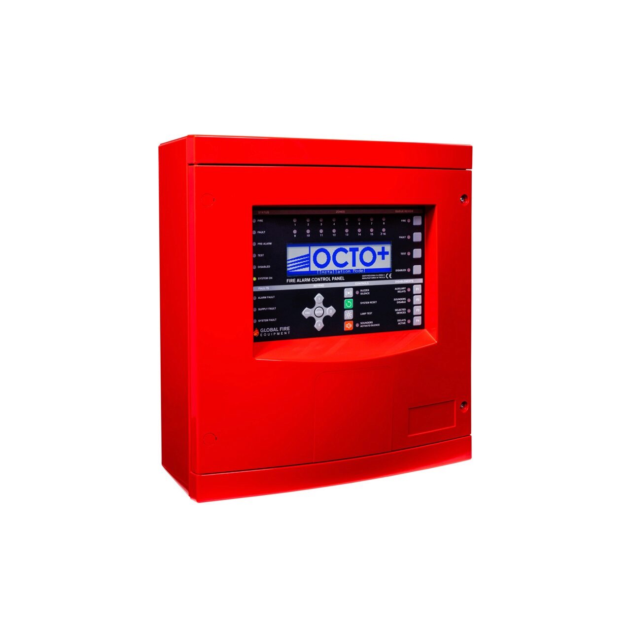 - Centrala de detectie incendiu OCTO+, adresabila, 1-4 bucle (in functie de modelul de loop card X-LC EVOLUTION folosit), se pot conecta pana la 32 centrale in retea CHAMELEON NETWORK folosind interfete redundante RS422 sau Fibra Optica, 125 adrese pe bucla, display cu LED-uri pentru 16 zone, protocol Zeos/GFE/Wizmart/Apollo selectabil, meniu si interfata in limba romana, display LCD alabastru 240x64 pixeli, 10.000 de evenimente in memorie, se programeaza direct de la tastatura centralei sau prin PC cu ajutorul aplicatie PC CHAMELEON CONNECTOR (port USB), include sursa 2.4A, capacitate acumulator 2 x 12V / 12Ah; carcasa rosie aluminiu & ABS, dimensiuni 345x375x139, clasa de protectie IP30. Certificari EN54-2, EN54-4; CPR-CPD; DoP CE.