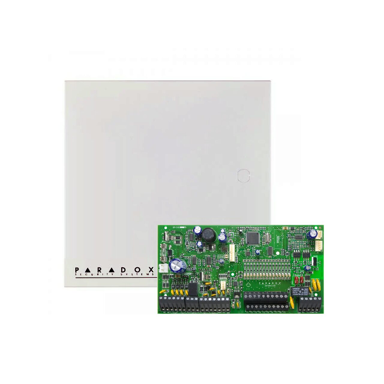 - 4 PGM-uri integrate + 1 releu de alarmă, extensibil la 16 (dintre care oricare poate fi wireless), 32 coduri de utilizator și 32 telecomenzi, 2 partiții.