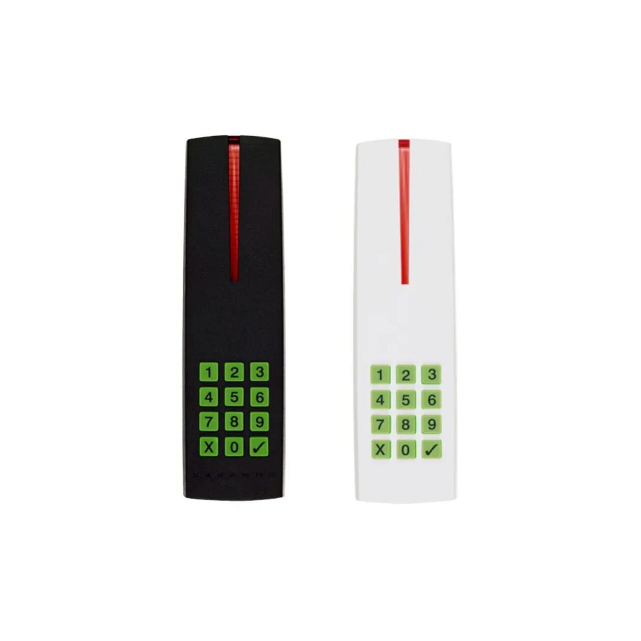 - Cititor de proximitate cu tastatura, de interior/exterior; 4 fire în loc de 7 pentru conectare cu modulele de control acces. Actualizare firmware local, utilizând 307USB şi InField, ajustare intensitate LED roşu/ verde, ajustare frecvenţă buzzer. Rezistent la intemperii (carcasă cu garnitură din cauciuc injectat şi aparatoare PCB). Disponibil în 3 culori: alb; negru; argintiu.