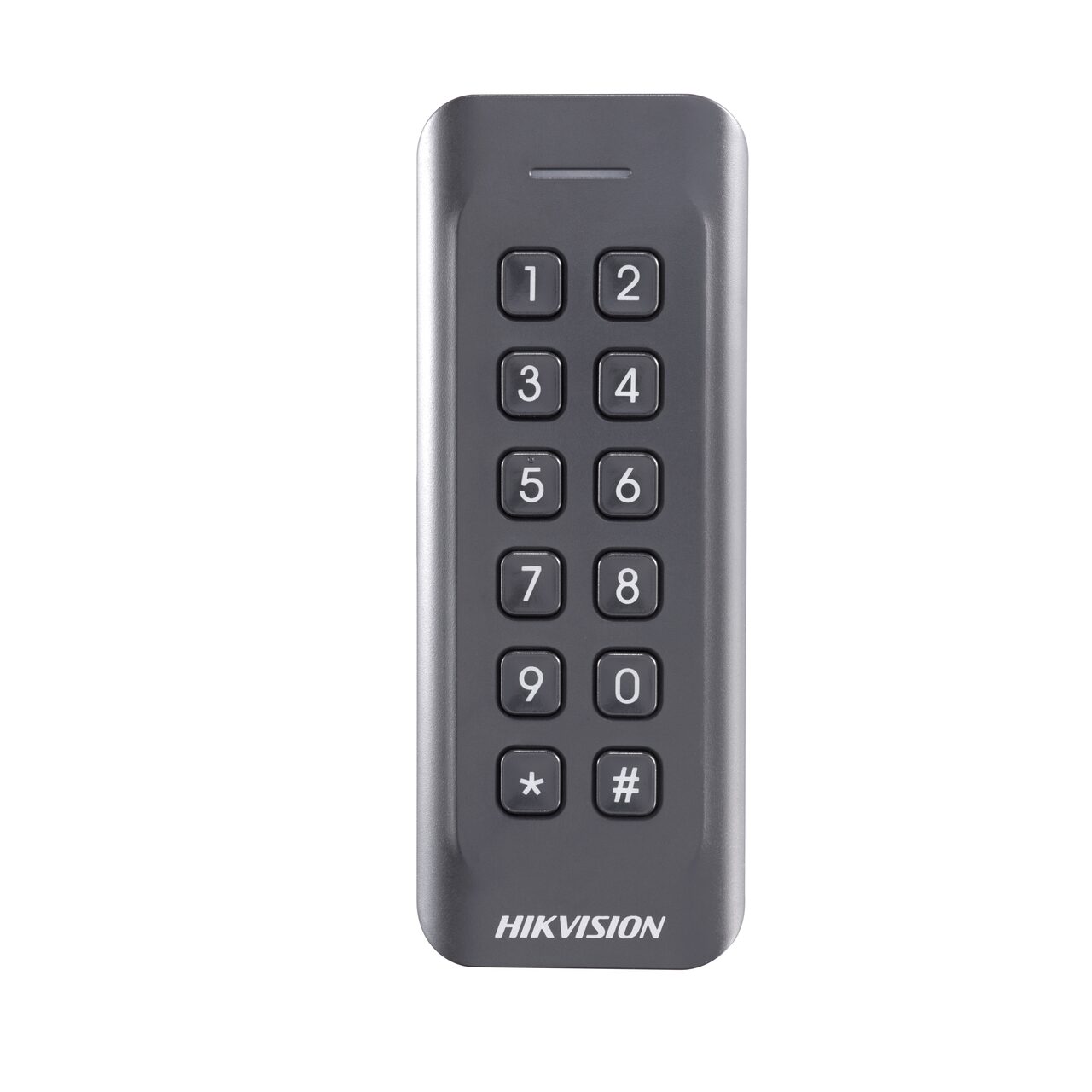 - Cititor card-uri proximitate EM Card DS-K1802EK - citeste card-uri proximitate 125KHz (fara logica comanda), tastatura cu 12 butoane fizice, se conecteaza la unitati de control acces, RS-485 si Wiegand (W26/W34) protocol, buzzer, alimentare 12Vcc, Power Indicator, Status Indicator, functioneaza la temperaturi -20°C to +65°C, clasa de protectie la intemperii IP65, dimensiuni 115.9mm×43.3mm×17mm, greutate 0.217kg.