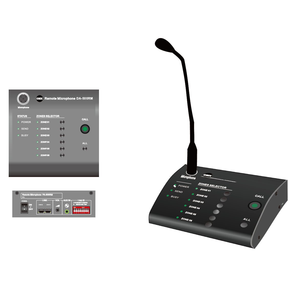 Remote paging microphone cu 6 zone (amplificatorul DA-500MT functioneaza cu pana la 6 CMX DA-500RM), posibilitate de cascadare, master-slave, alimentat de amplificator, distanta de cablare pana la 300 metri pe cablu CAT6 (24vCC).
