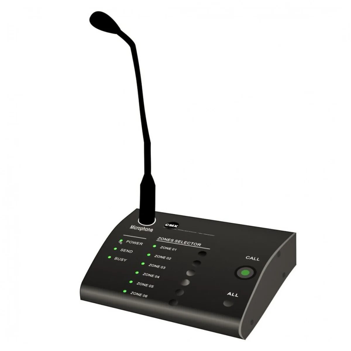 6 zone remote paging microfon care functioneaza cu amplificatoarele din seria DA-500MT, distanta de comunicare pe cablu pana la 300 metri; DA-500MT functioneaza cu pana la 6 microfoane de paging; microfonul este alimentat de amplificator, Frequency Response 80Hz~16kHz, S/N Ratio >70dB, temperatura de functionare -20C pana la +70C, dimensiuni 153×52×175mm, greutate 0.8kg.