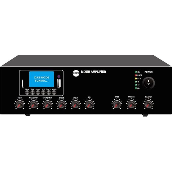 Mixer amplificator 60W rackabil radio FM 88 MHZ-108MHz, cu redare Mp3/SD/USB, Bluetooth: sistem audio foarte competitiv, incude: sursa intrare, prea-amplificator si amplificator; 4 intrari de microfon (line1,2, Mic1 si Mic 2(XLR Mic IN)) si 2 intrari auxIiare; Reglaje : master volume; joase si inalte(master volume nu regleaza nivel semnal Out1); functioneaza in sisteme la 100V, 70V si impedante de 4 Ohm-8 Ohm-16 Ohm; direct conectabile la PC; Mp3 player cu redare USB/SD; Bluetooth si telecomanda.