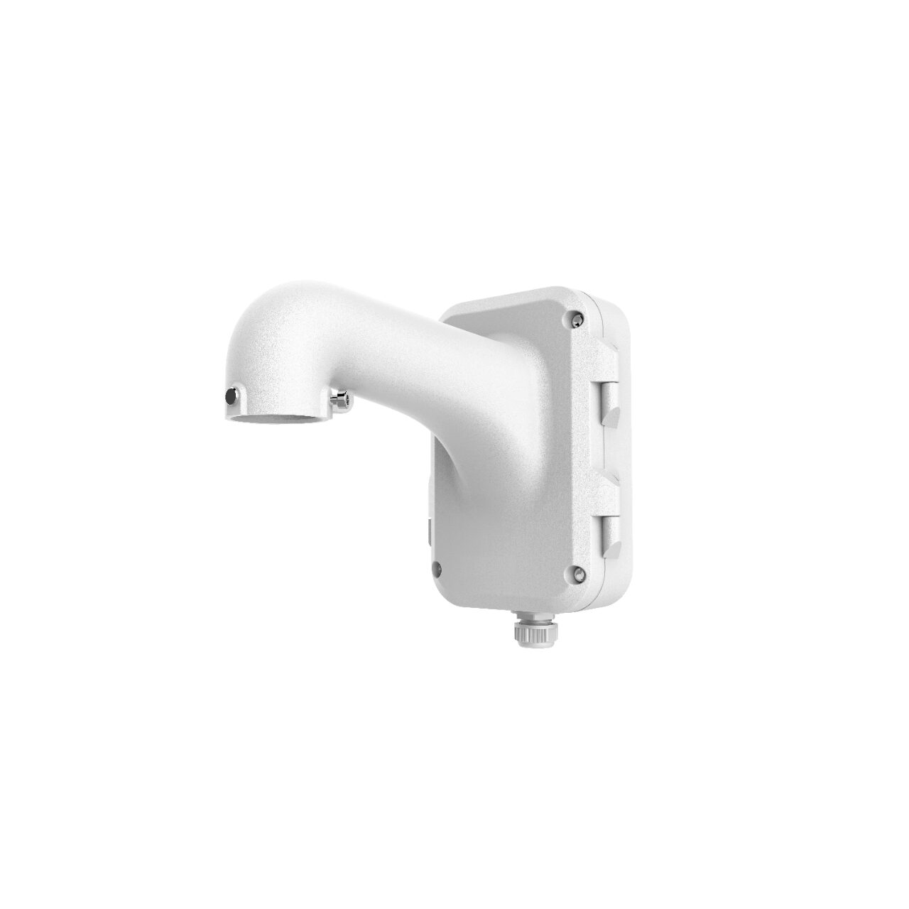 Suport din aluminiu de culoare alba, pentru camere video supraveghere speed dome Hikvision pentru instalare pe perete, dimensiuni 355.5 mm × 255.3 mm × 170.7 mm.