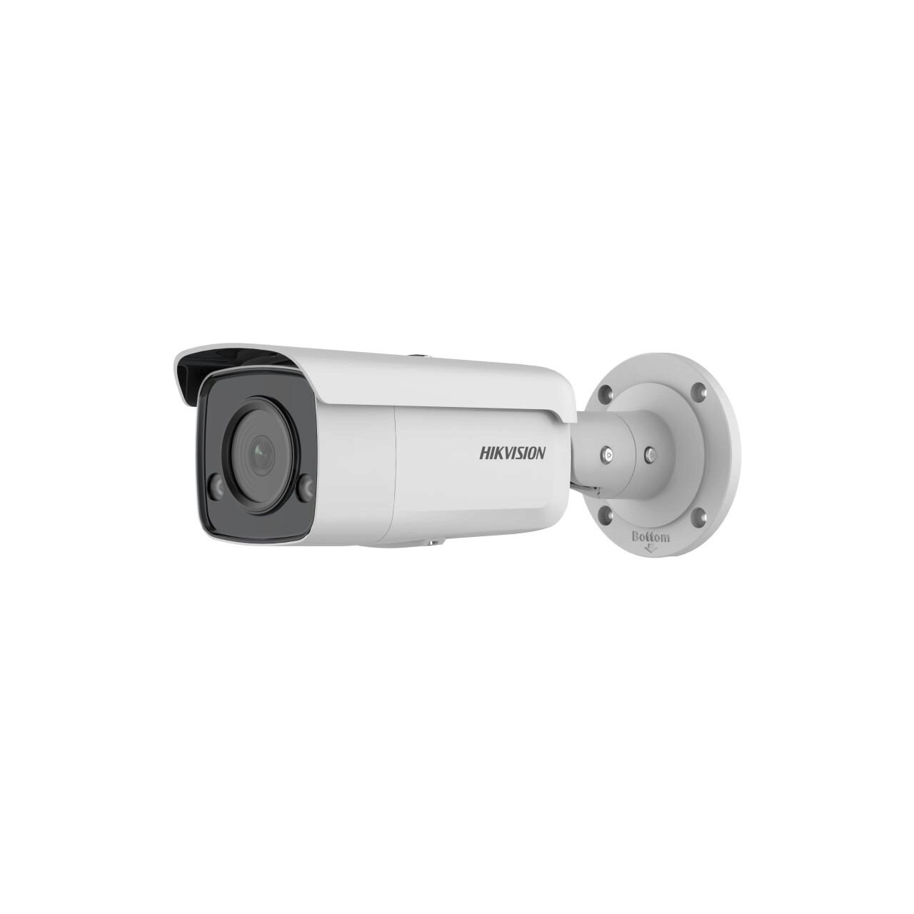 AcuSense ColorVue 4 Megapixel UltraHD exterior, 2688×1520 pixeli 25 fps, obiectiv 2.8 mm 112 grade deschidere, compresie H.265+, H.264+, H.265, H.264 1/1.8" Progressive CMOS, ColorVu iluminare minima color 0.0005 Lux @ (F1.0, AGC ON), iluminator automat cu lumina alba efectiv pana la 60m, 130dB TrueWideDynamicRange, BLC, HLC, 3D DNR, AcuSense: optional filtreza detectia la miscare doar in masura in care oameni sau masini sunt in scena; micro SD/SDHC/SDXC card slot, up to 256 GB, Deep Learning: Face capture, Perimeter Protection: Line crossing detection, intrusion detection, region entrance detection, region exiting detection, EXTERIOR -30 °C ~ 60C, weatherproof IP67, carcasa metalica, alimentare 12Vcc/1A sau PoE (802.3af, class 3), max. 8.5 W, 1 RJ45 10M/100M ethernet port, livrata cu aplicatie gratuita a furnizorului pana la 64 camere/server, dimensiuni Ø105 mm × 289.5 mm , 1.17 kg; doza compatibila DS-1280ZJ-S, DS-1260ZJ, Vertical Pole Mount DS-1275ZJ-S-SUS.