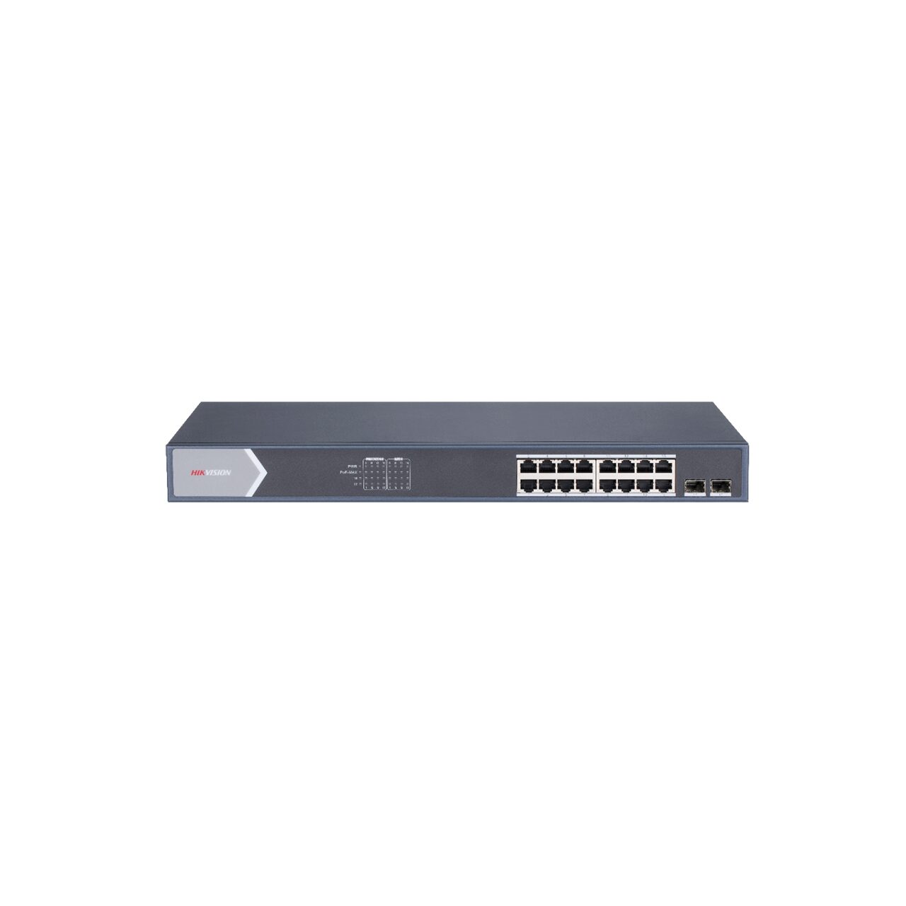 Switch cu web MANAGEMENT 16 porturi EXTENDED POE 10/100Mbps RJ45 ports, 2 SFP (gigabit fiber optical ports), Multiplex Ports, MAC Table 8K, STP/RSTP, VLAN, link aggregation, SNMP, QoS : transmite alimentare POE (IEEE 802.3af, IEEE802.3at) si receptioneaza date prin cablu UTP Cat5 la 200 metri catre camere IP Hikvision (Extended mode ON, maximum 30W/port, total maxim/switch 225W), PoE watchdog (urmareste si restarteaza automat camerele blocate); recomandam limitarea traficului camerei la 6144Kbps); 36 Gbps Switching, 6 kV Surge Protection; temperatura de functionare -10℃-55℃, dimensiuni 440 mm × 220.8 mm × 44 mm.