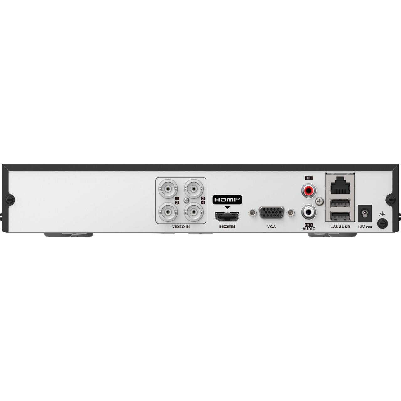 - Gestioneaza 1 x HDD SATA de pana la 10 TB, neinclus, playback sincron local 4 canale, vizualizare inregistrari simultan 4 camere video, comanda camere mobile speed dome Hikvision TurboHD cu comanda pe cablu coaxial (protocol Coaxitron), Audio In/Out 1/1, 2 × USB 2.0, RS-485 (half-duplex), HDMI out 2K (2560x1440 pixeli 60Hz) si VGA out FullHD 1080p 1920 × 1080/60Hz, compresie H.265 Pro+/H.265 Pro/H.265/H.264+/H.264, Network Interface 1x RJ45 10/100 Mbps self-adaptive Ethernet interface.