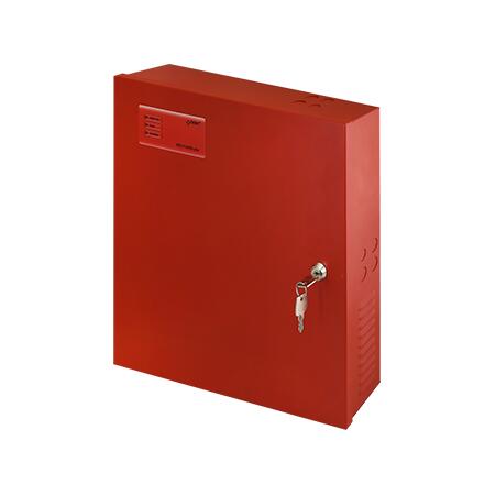 - 230VAC, ieșire 4,6A / 27,6Vdc în regim de consum constant, ieșire 5A / 27,6Vdc în regim cu vârfuri de consum. Curent incarcare acumulator: 0.4A. Acumulatori necesari: 2x7h/12V (nu sunt inclusi). Consum 55mA, randament: 87%, protectie la: scurtcircuit (SCP), suprasarcina (OLP), sub si supratensiune (OVP/UVP), antisabotaj (protectie la deschidere). Iesirea EPS FLT – semnalizeaza avaria alimentarii AC. In conformitate cu standardele EN 54-4 si EN12101-10. Indicatoare LED. Dimensiuni 330x305x82 mm. Montare aparenta, cutie cu cheie.