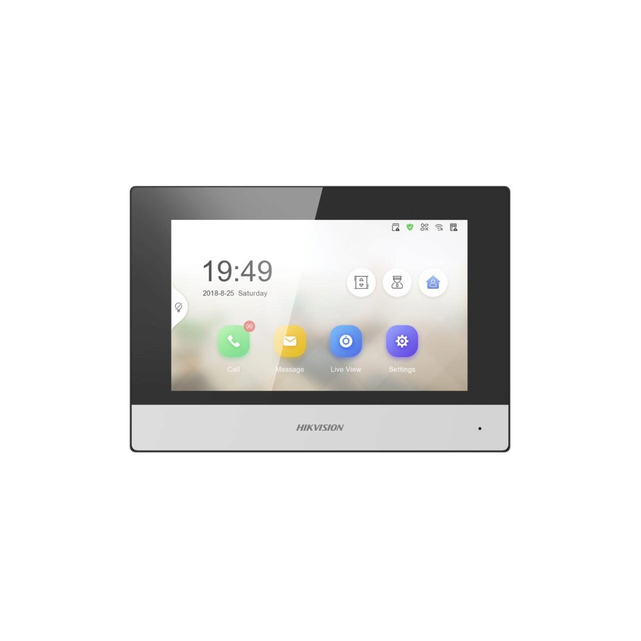 - Post interior VideoInterfon IP: 7" touchscreen color LCD rezolutie 1024x600 pixeli, microfon, difuzor, RJ 45 10M/100M Self-Adaptive Ethernet Interface IEEE802.3af, standard PoE, Wi-Fi 802.11 b/g/n, card slot up to 32GB, Alarm I/O 8/2, RS485, alimentare 12Vcc/1A sau POE IEEE802.3af, dimensiuni 200 mm × 140 mm × 15.1 mm.