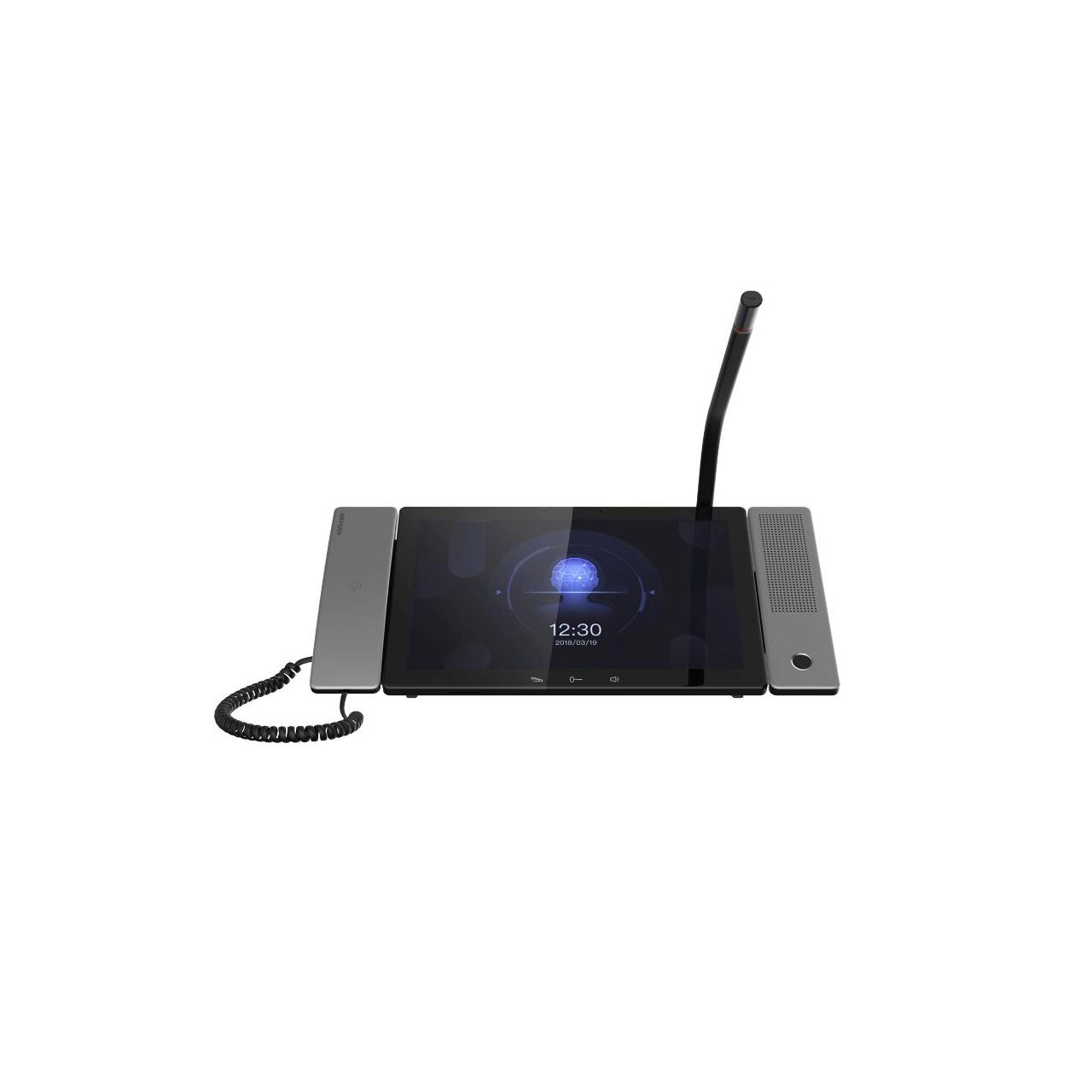 - Master Station IP pentru sisteme VideoInterfon Hikvision; pentru utilizare in dispecerat, se conecteaza la video interfoane si camere IP (pana la 10000 posturi video interfon si 128 camere video); raspunde la alarma (pentru dispecer), comanda deschidere usa, panou din sticla si aluminiu; camera VGA, display IPS 10.1" color touchscreen rezolutie 1280x800 pixeli, microfon si difuzor incorporate, micro SD card slot de pana la 128GB, comanda deschidere usa, 2x 10/100/1000 Mbps Self-Adaptive Ethernet Interface, Alarm I/O 2/2, HDMI out, alimentare 12 Vcc/1A sau PoE (LAN1) , functioneaza in gama de temperaturi -10C pana la +50C; dimensiuni 292 mm × 166 mm × 31 mm.