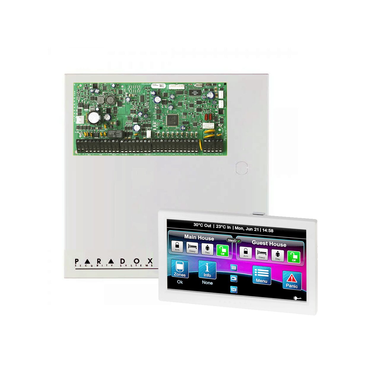 - Centrala EVO HD - Centrala adresabila 192 zone cu facilitati pentru controlul accesului, 8 intrari de zona pe placa (16 cu dublare de zona - ATZ), extensibila la 192 zone via BUS cu 4 fire.