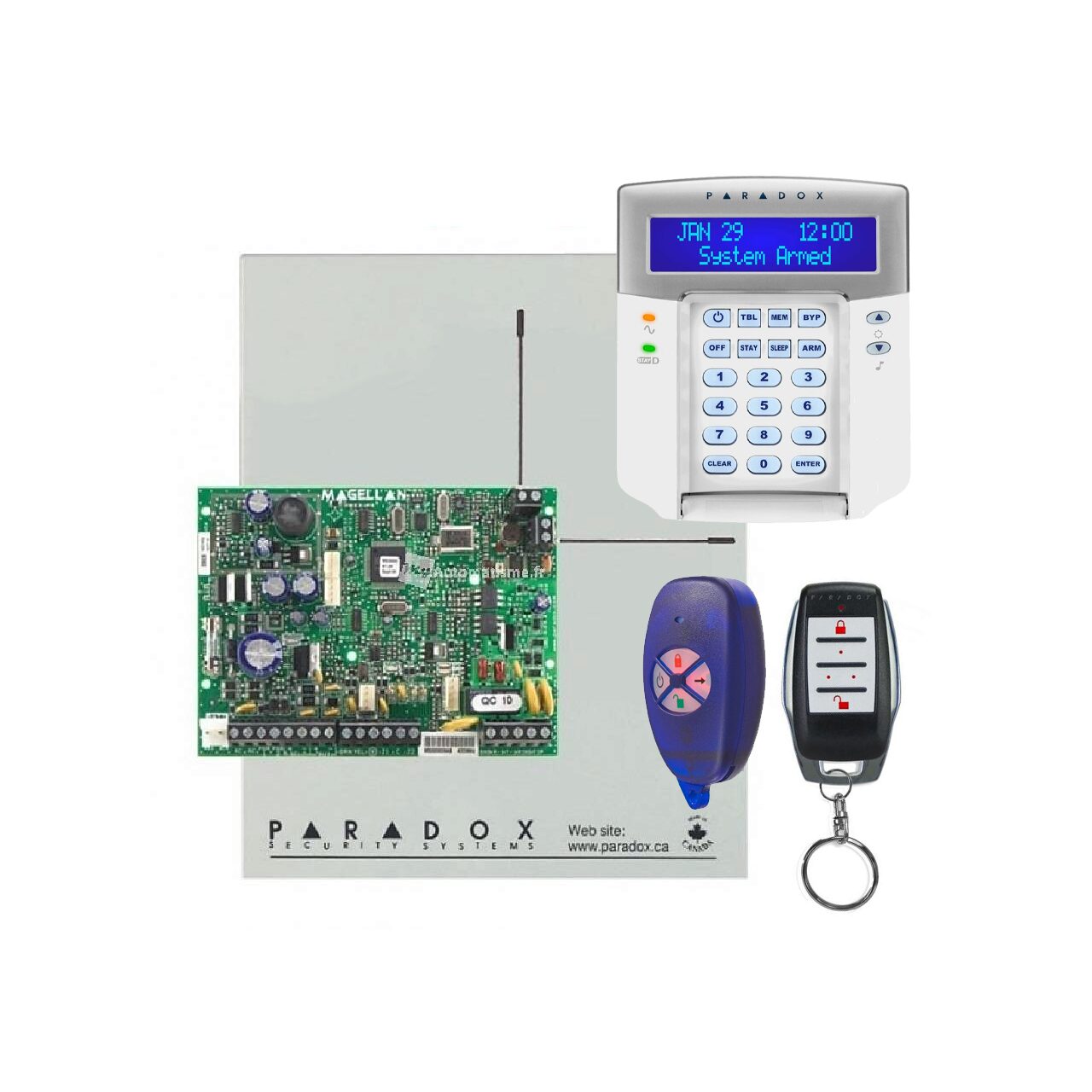 - Centrala Magellan cu emiţator-receptor radio - 32 zone, Stay D, 2 iesiri seriale master/slave, Hardware M2 bidirecțional FSK ready, transceiver (433 / 868 MHz).
