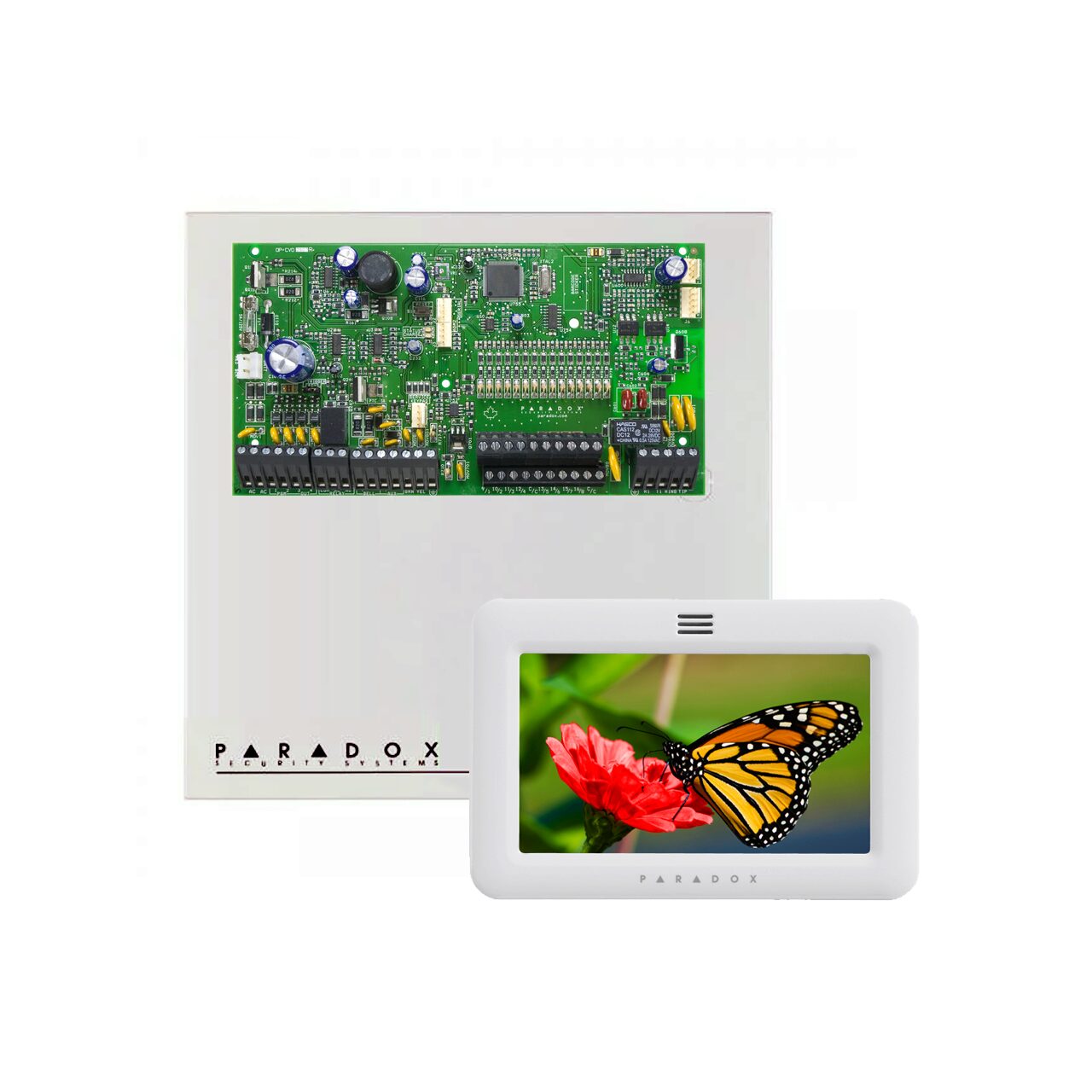 - 4 PGM-uri integrate + 1 releu de alarmă, extensibil la 16 (dintre care oricare poate fi wireless), 32 coduri de utilizator și 32 telecomenzi, 2 partiții.