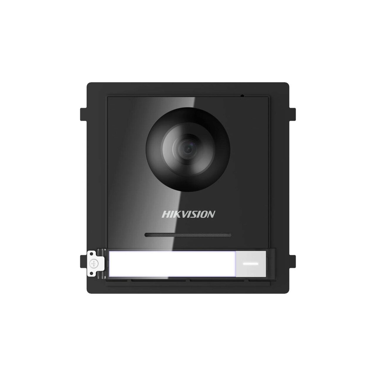 - Post exterior pe 2 fire Modul CameraVideo IP pentru VideoInterfon IP Hikvision pe 2 fire, camera video FishEye 1080p rezolutie 1920x1080 pixeli FullHD, deschidere 180 grade orizontal (vertical 96 grade); echipata cu microfon si difuzor puternic; iluminator InfraRed automat, BLC, DNR, WDR, Anti-flicker; compresie H.264, 10/100 Mbps Self-Adaptive Ethernet, Alarm In/Out 4/2 (2 iesiri releu), 1 buton sonerie.