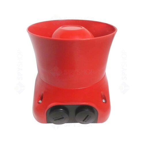 - Sirena adresabila de exterior, CONTINE IZOLATOR DE BUCLA, culoare rosie, contine soclu, montare aparenta, 4 tonuri programabile, consum redus, maxim 32 sirene / bucla, se adreseaza in intervalul 94-125, posibilitate setare mod SHADOW (nu ocupa o adresa si se activeaza la fiecare alarma de incendiu), categoria de protectie IP65 - Tip B - utilizare la EXTERIOR, certificare: EN54-3, CPR, DoP-CE.