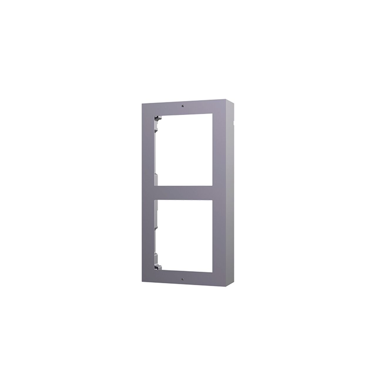 - Carcasa cu montare aparenta din otel inoxidabil si aliaj de aluminiu pentru 2 module VideoIntercom, dimensiuni 219 x 107 × 4 mm.