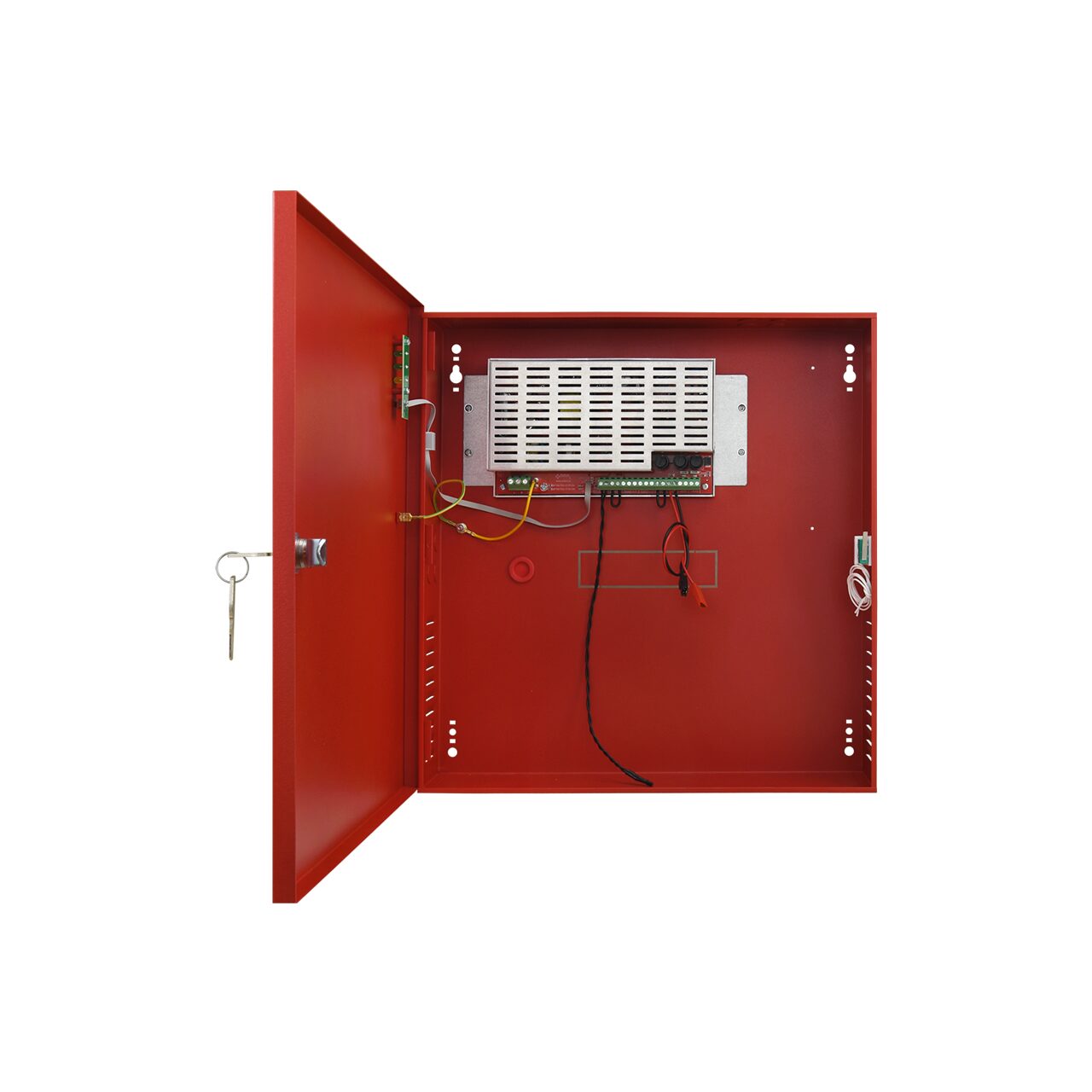 - 230VAC, ieșire 2,2A / 27,6Vdc în regim de consum constant, ieșire 3A / 27,6Vdc în regim cu vârfuri de consum. Curent incarcare acumulator: 0.8A. Acumulatori necesari: 2x17h/12V (nu sunt inclusi). Consum 52mA, randament: 89%, protectie la: scurtcircuit (SCP), suprasarcina (OLP), sub si supratensiune (OVP/UVP), antisabotaj (protectie la deschidere). Iesirea EPS FLT – semnalizeaza avaria alimentarii AC; ALARMA - defect major. In conformitate cu standardele EN 54-4 si EN12101-10. CNBOP-PIB No 1438-CPR-0628. Aprobari CNBOP-PIB No. 3501/2019. Indicatoare LED. Dimensiuni 385x402x88 mm. Montare aparenta, cutie cu cheie.