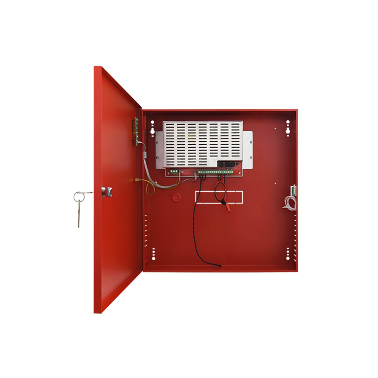 - 230VAC, ieșire 4,2A / 27,6Vdc în regim de consum constant, ieșire 5A / 27,6Vdc în regim cu vârfuri de consum. Curent incarcare acumulator: 0.8A. Acumulatori necesari: 2x17h/12V (nu sunt inclusi). Consum 55mA, randament: 87%, protectie la: scurtcircuit (SCP), suprasarcina (OLP), sub si supratensiune (OVP/UVP), antisabotaj (protectie la deschidere). Iesirea EPS FLT – semnalizeaza avaria alimentarii AC; ALARMA - defect major. In conformitate cu standardele EN 54-4 si EN12101-10. CNBOP-PIB No 1438-CPR-0628. Aprobari CNBOP-PIB No. 3501/2019. Indicatoare LED. Dimensiuni 385x402x88 mm. Montare aparenta, cutie cu cheie.