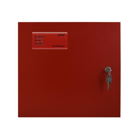 - 230VAC, ieșire 2,6A / 27,6Vdc în regim de consum constant, ieșire 3A / 27,6Vdc în regim cu vârfuri de consum. Curent incarcare acumulator: 0.4A. Acumulatori necesari: 2x7h/12V (nu sunt inclusi). Consum 52mA, randament: 89%, protectie la: scurtcircuit (SCP), suprasarcina (OLP), sub si supratensiune (OVP/UVP), antisabotaj (protectie la deschidere). Iesirea EPS FLT – semnalizeaza avaria alimentarii AC. In conformitate cu standardele EN 54-4 si EN12101-10. Indicatoare LED. Dimensiuni 330x305x82 mm. Montare aparenta, cutie cu cheie.