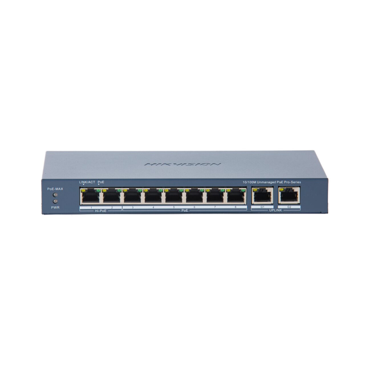 DS-3E0310HP-E - 8X 10/100Mbps RJ45 EXTENDED POE ports, 2 × Gigabit RJ45 port