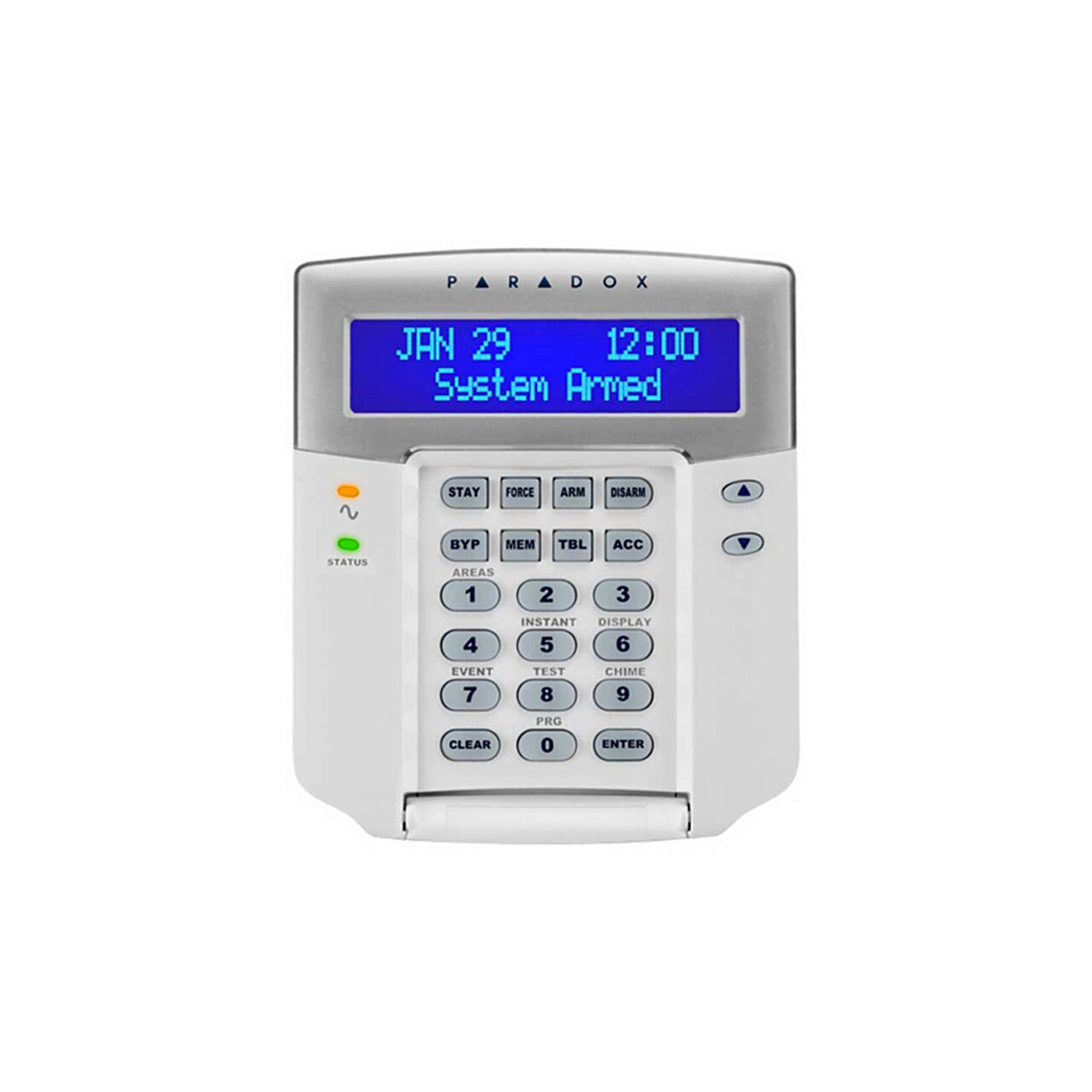 - Tastatura LCD monocrom, 32 caractere; compatibilitate: EVO. Afişarea zonelor în alarmă până la dezarmarea sistemului, actualizare firmware local, via CV4USB / 307USB şi InField; meniu simplificat de programare a utilizatorilor şi telecomenzilor în sistem, etichete programabile (via MemoryKey, WinLoad, NeWare sau facilitatea Module Broadcast), asignare către una / mai multe partiţii. 1 intrare de zonă (contact magnetic), număr nelimitat de zone clopoţel, programabile independent, 8 butoane de funcţii, 3 alarme de panică acţionate de grupuri a câte 2 butoane, afişare oră în format 12 sau 24h; meniu disponibil si in romana.