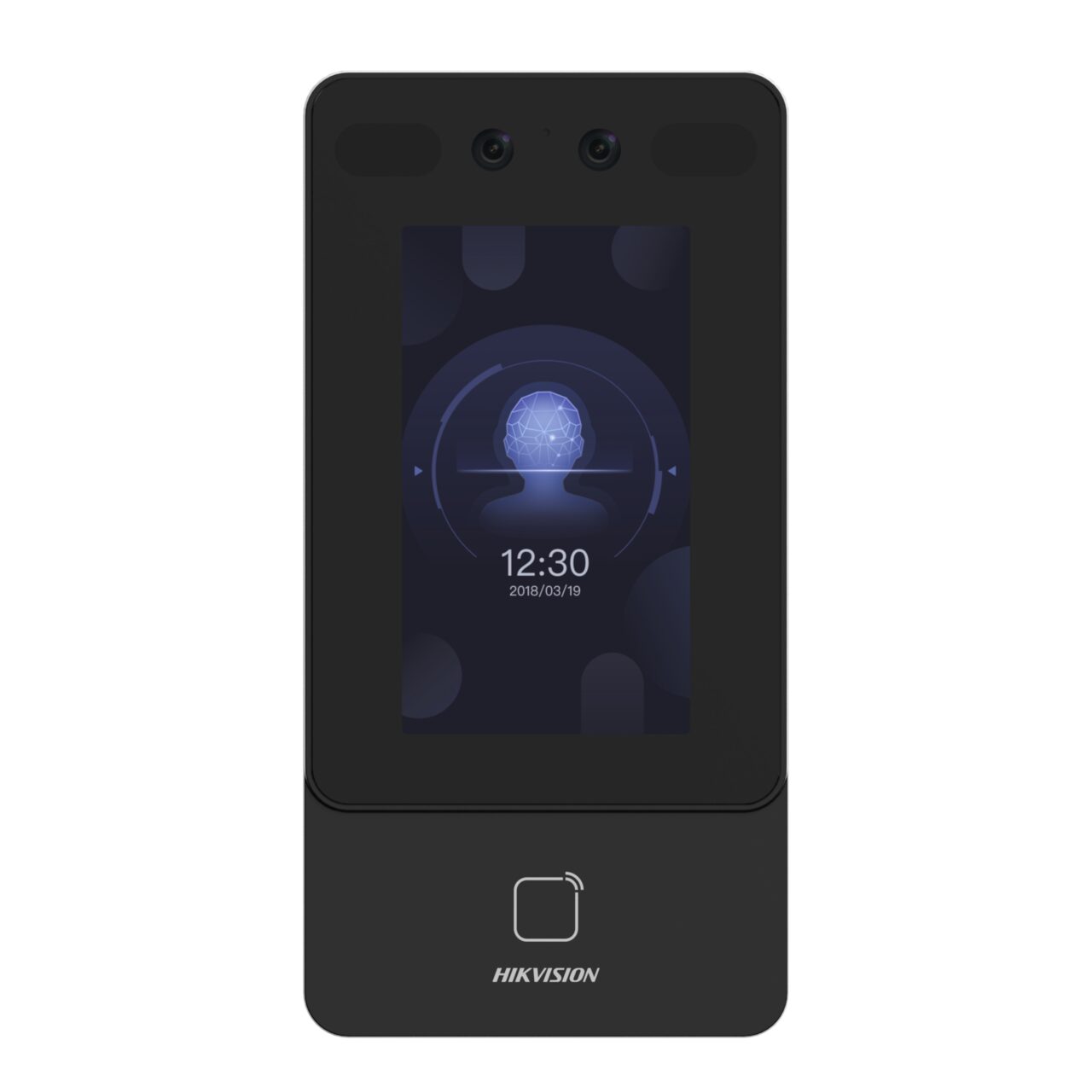 - Terminal control acces StandAlone DS-K1T342MWX-E1 - face recognition (memorie pentru 1500 persoane, distanta citire 0.3-1.5metri, viteza 0.2secunde, succes peste 99% ), cititor card-uri Mifare 13,56 MHz (3000 card-uri), fingerprint (memorie 3000 amprente), memorie pentru 150000 evenimente, display 4.3" touch spreen rezolutie 272x480 pixeli, camera video duala 2 MegaPixel incorporata, 2 obiective Face anti-spoofing, microfon si difuzor cu two-way audio, accepta conectare cu cititor extern Wiegand, configurare din webclient.