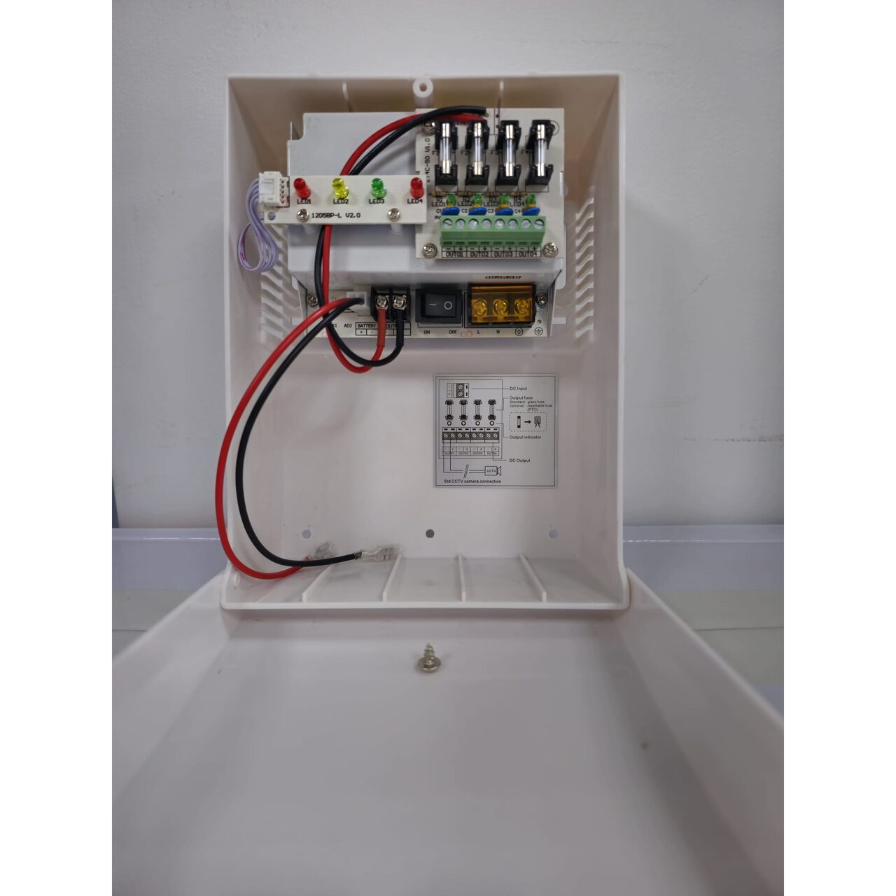 Sursa de alimentare in comutatie cu cutie metalica, iesire baterie backup ajustabila 12-14Vcc 3A, tensiune intrare AC 100-240V, 50~60HZ, tensiune iesire ajustabila 12-14Vcc, curent de iesire 3A/36W, 4 iesiri protejate de cate 1 siguranta 1.5A; pentru a fi utilizata cu acumulator 12V/7Ah, Indicator alimentare, iesire, incarcare baterie,